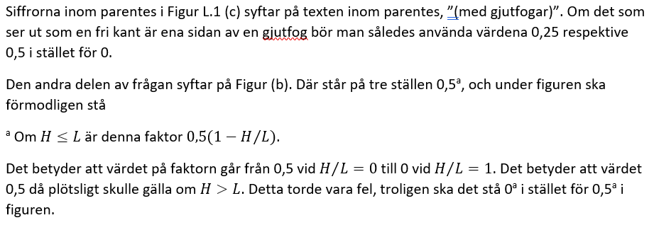 Beträffande måttet c1 så bör det tolkas som avståndet mellan plattans kant och pelarens innerkant. Detta stämmer med definitionen i ekvation (6.41) om pelaren står kant i kant med plattan. Det ger rimligt resultat även om pelaren står innanför kanten, eller om den sticker utanför kanten (i figur 9.9 a) bör c1 alltså motsvara måttet y, inte cy).