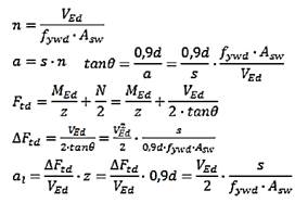Som jag tolkar det kan jag egentligen inte använda den första formeln för beräkning av enskilda stänger, men då blir resultatet att jag alltid ska tvärkraftsarmera med byglar i 90 grader för det blir bättre kapacitet, men så är väl inte i verkligheten? Eller får jag använda cot θ faktorn även på ett fåtal stänger? Blir mer rimliga värden på kapaciteten och det stämmer bättre med tidigare koder. Har en formel från betonghandbogen (16b sid 246) som ger en faktor på √2 för armering som ligger med 45 graders vinkel. Hur får jag med denna faktor i den nya koden och kan jag få med detta för armering som ligger i ett fåtal lager? Gör det någon skillnad rent formel mässigt om jag lägger armeringen i två lager?